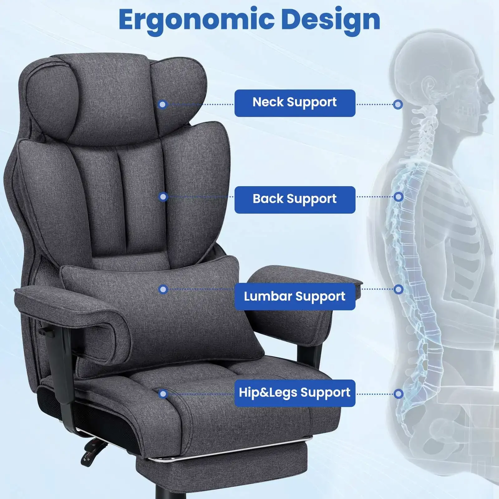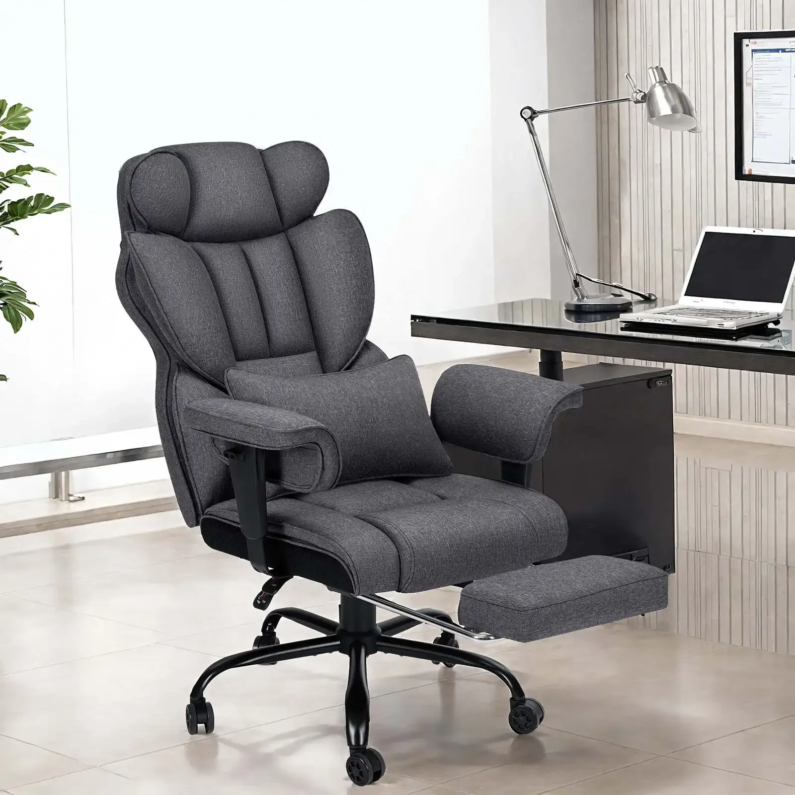 Big & Tall High-Back Executive Office Chair | Breathable Linen + Massage Lumbar Support